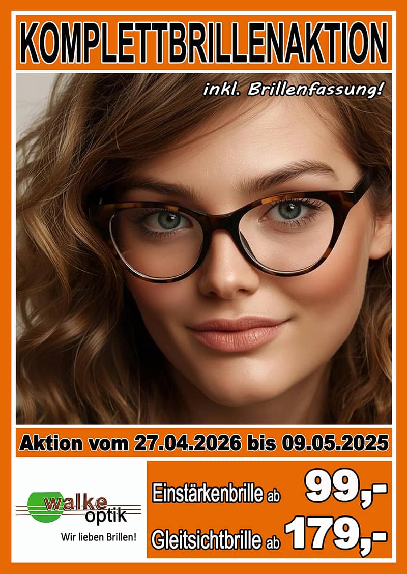 * Gültig bis 09.05.2026. Nur so lange der Vorrat reicht und nicht mit anderen Aktionen/Angeboten kombinierbar! Bitte beachten Sie die Lieferbreiche Einstärkengläser: sph. +/-6,0 cyl. 2,0 | Gleitsichtgläser: sph. +/-6,0 cyl. 4,0 Add 3,0 soweit technisch möglich. Nicht im mobilen Service. Irrtümer vorbehalten.